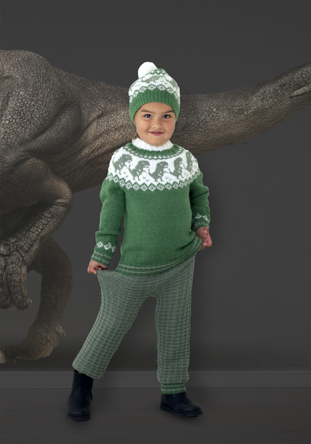 "Dino" Genser, bukser og hue - Viking Design 2131-6A Kit - 2-12 År - Viking Alpaca Storm