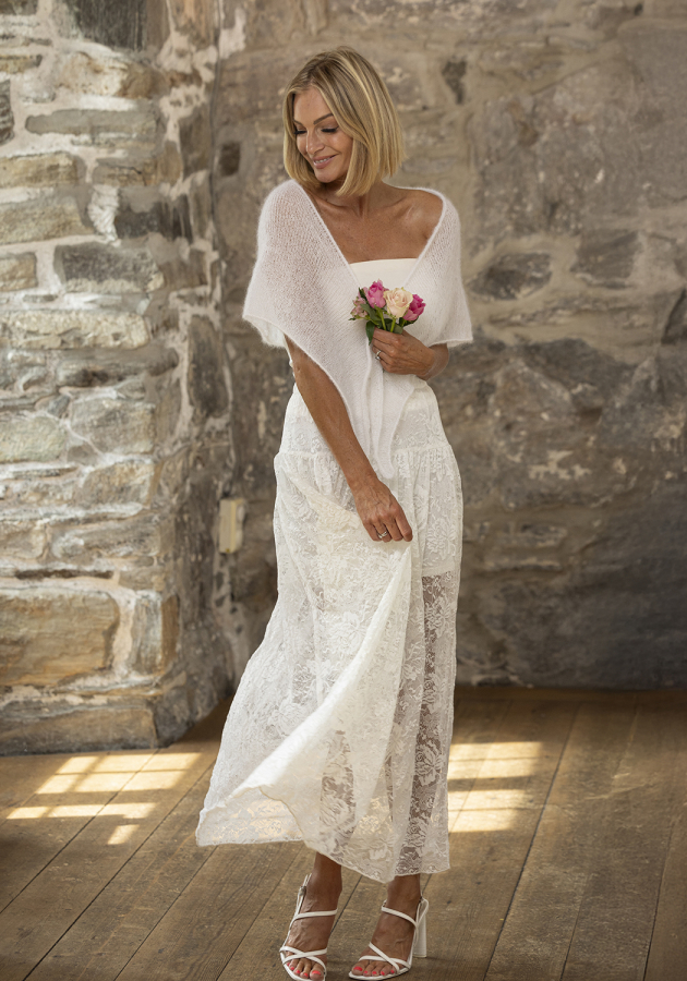 Modellen strikkes nedfra og op i 2 tråd kid silk