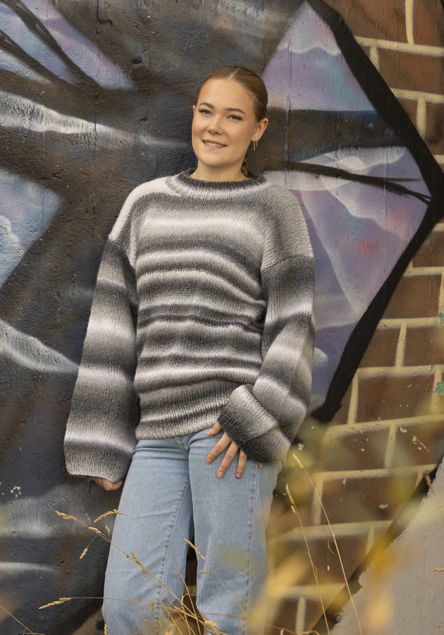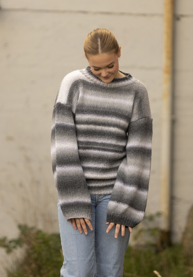 Denne model strikkes nedefra og op. Viking alpaca bris multi er i 100g nøgler