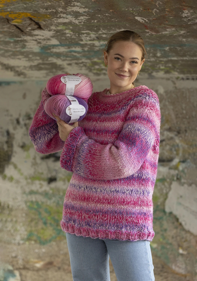 Denne model strikkes nedefra og op. Viking alpaca bris multi er i 100g nøgler