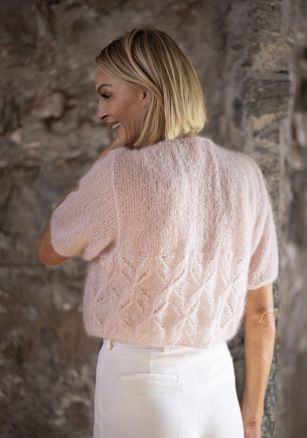 Modellen strikkes nedfra og op i 2 tråd kid silk
